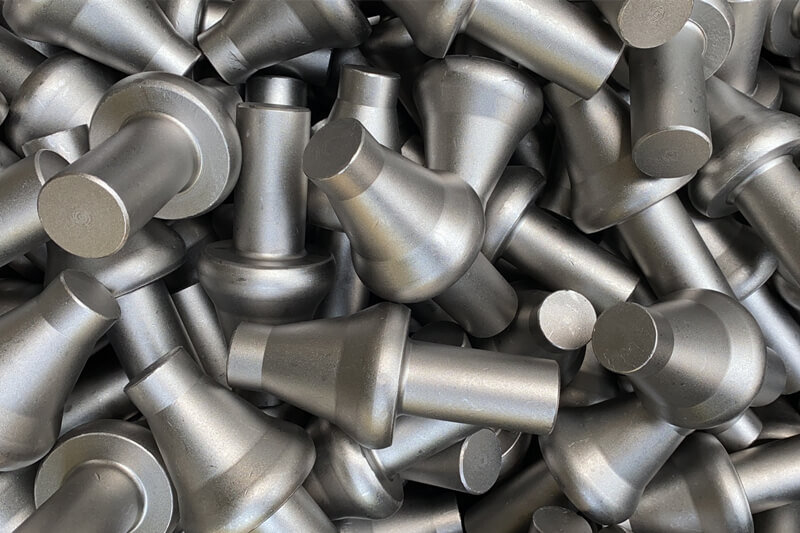 Cold Extrusion of Mining Bits: Cold extrusion is the processing method of putting metal blanks in a cold extrusion mould cavity, at room temperature, applying pressure to the blanks through the convex mould fixed by the press so that the metal blanks produce plastic deformation and make parts. The process of producing cold-extruded mining bits is pre-formed for positive extrusion and eventually forged. It has the characteristics of high production efficiency, high product precision, and high material utilization rate.